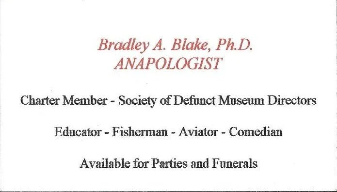 From 1986 to the end of July, 1996, Dr. Blake was assigned the duties of the Director of the NMSU Museum where he continued to teach classes both in Anthropology and Museology while at the same time seeing to the growth and development of the museum.